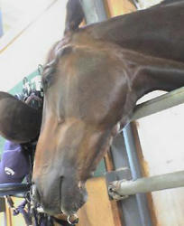 先週の県大会、90cmと100cmに出て全て3反抗失権しました。 敗因はハミのコンタクトがはずれること。 障碍に向かった時、フッとした瞬間に翡翠がハミから逃げて失速するんです。 その時に私が押し切れないから、そのままずるずる止まってしまう ![]() 3反抗の全てはそれが原因でした。 先生の先通しは落下はあったものの、反抗は一切なくちゃんとゴールしているのですから、翡翠ではなく私の問題です。 そこで試合後からコンタクトの特訓!!です。 フラットワークしかり、障碍を跳んでもしかり、常にハミのコンタクトを感じておくこと。 少しでもはずれそうな感触があったら、はずれる前に対処すること! 脚を使って前に出す。 そのために、フラットワークの段階で脚への反応をよくしておく。 はずれてからではなく、はずれそうな感触があったらはずれる前に対処する、その反応のよさが私には必要です。 頭で考えていては間に合わないので、身体で感じないと 。これを意識しながら、今日はコース練習。 とにかく、馬の勢いを感じること! ハミからはずれそうになったら、はずれる前に脚を使って前に出すこと! 自分が引っ張っていられる状態をまず作ること! 引っ張れる勢いがないのに引っ張ってしまって、止まってしまうのだから。 なんとなく先生の言いたいことはわかるし、拳の感触もわかるんだけど、ちゃんと対処できるのは100%とはいかないのよね 。ひたすら修行の道は続くのです。。。。。 |